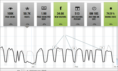 心電図を彷彿とさせる折れ線グラフの下には、「訪問」と「PV」が確認できるようになっています。