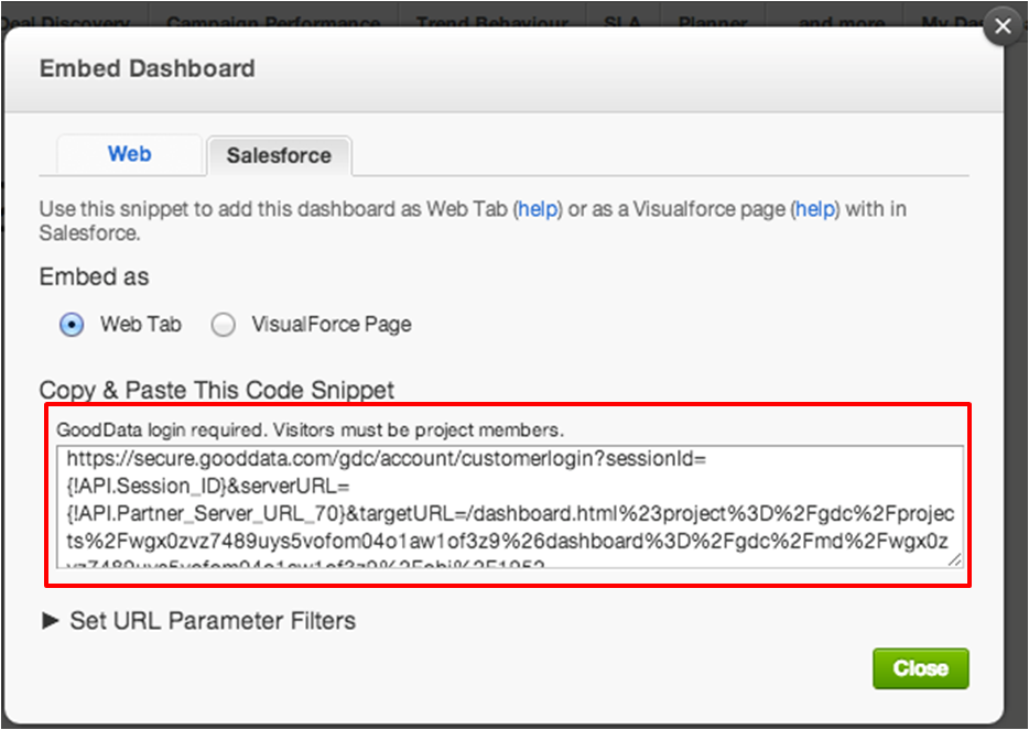 GoodDataヘルプページ:Embed a Dashboard into Salesforce(英語)